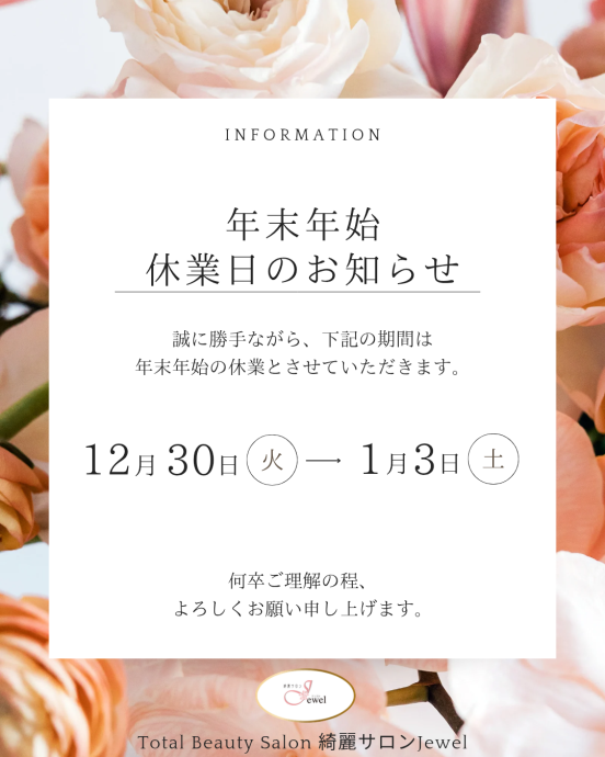 いつも綺麗サロンJewelをご利用いただき、誠にありがとうございます!