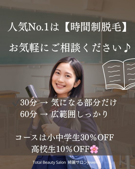 綺麗サロンJewelでは学生応援として