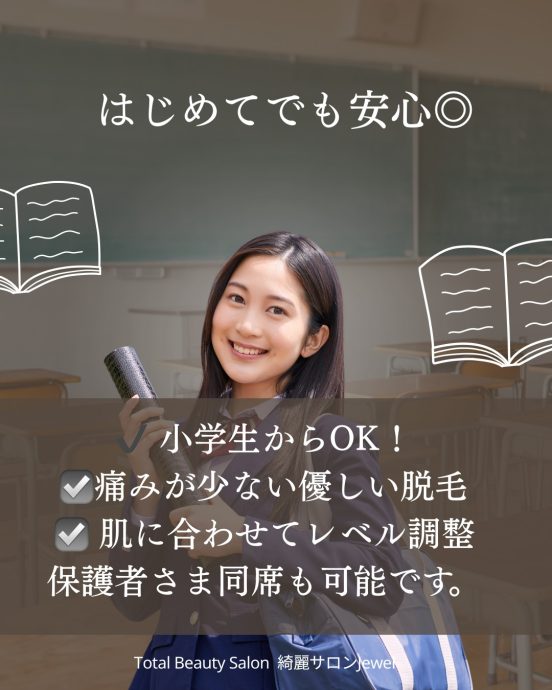 小学生・中学生・高校生の脱毛はお任せください。